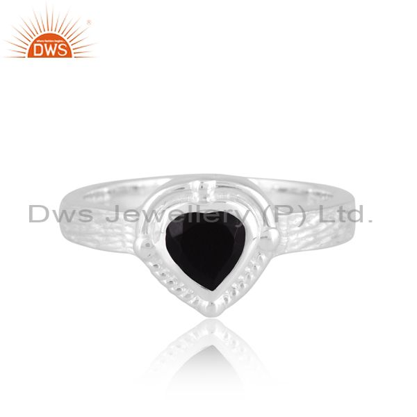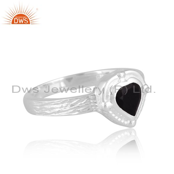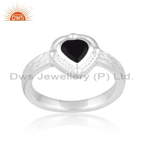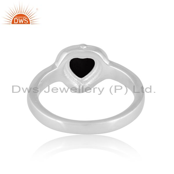 Sterling Silver White Ring With Heart Cut Black Onyx