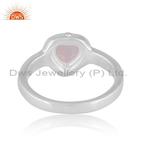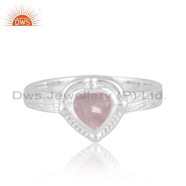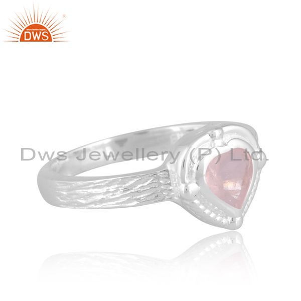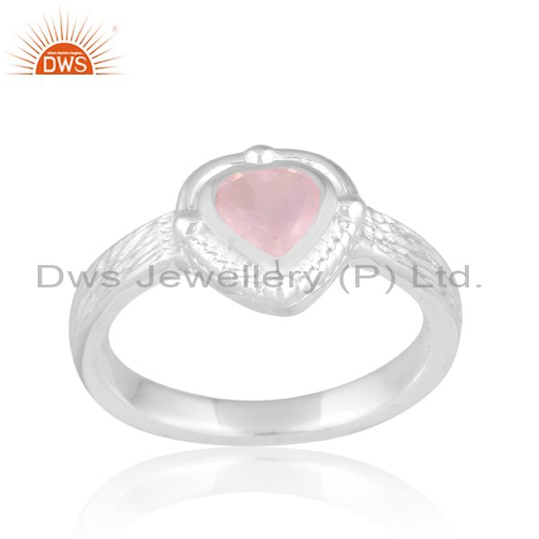 Sterling Silver White Ring With Heart Cut Rose Quartz