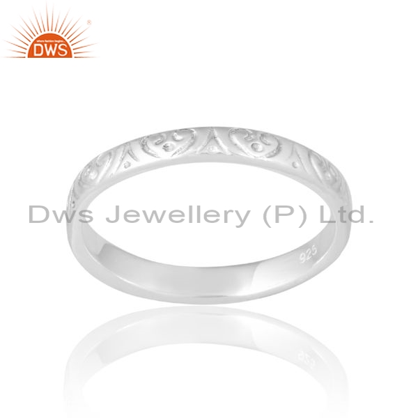 Sterling Silver White Ring With Heart Patterns
