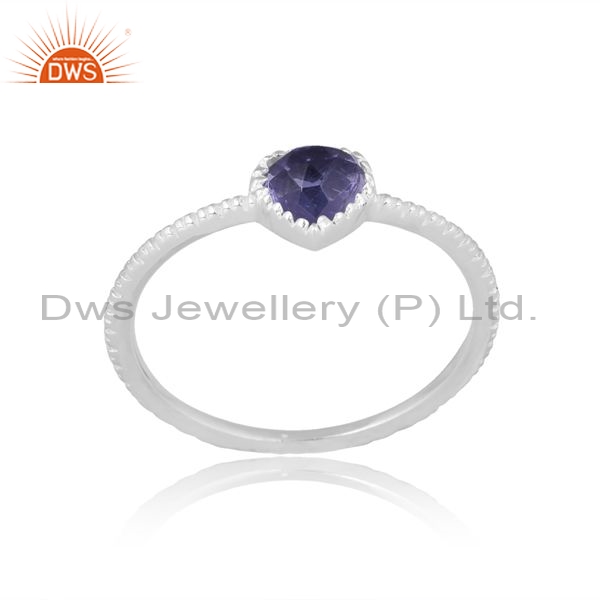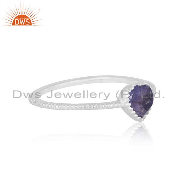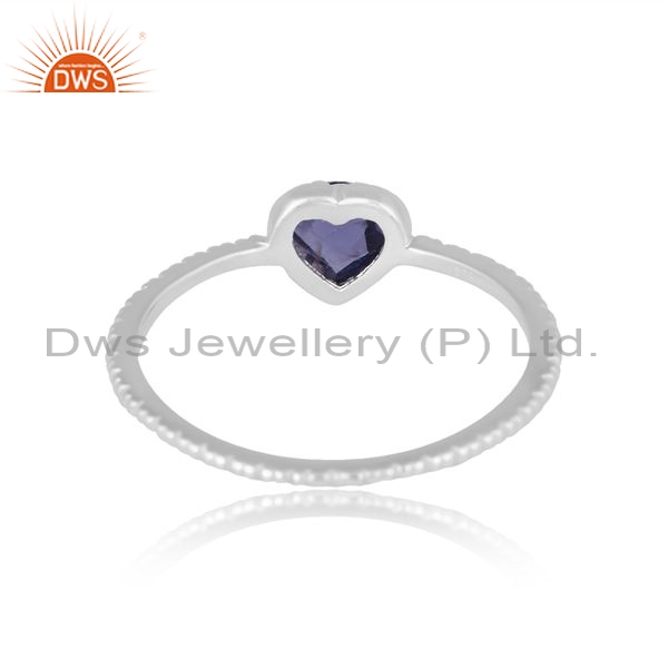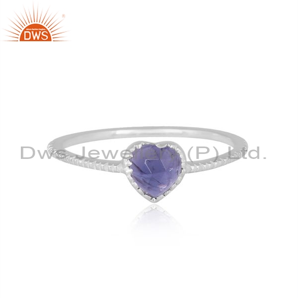 Sterling Silver White Ring With Iolite Checker Heart Cut