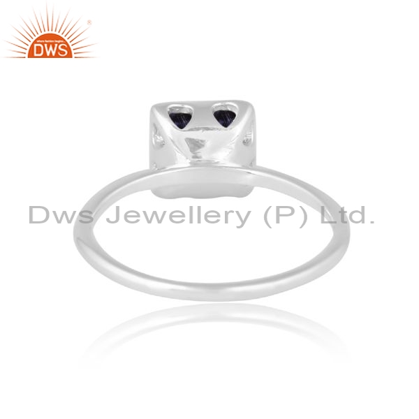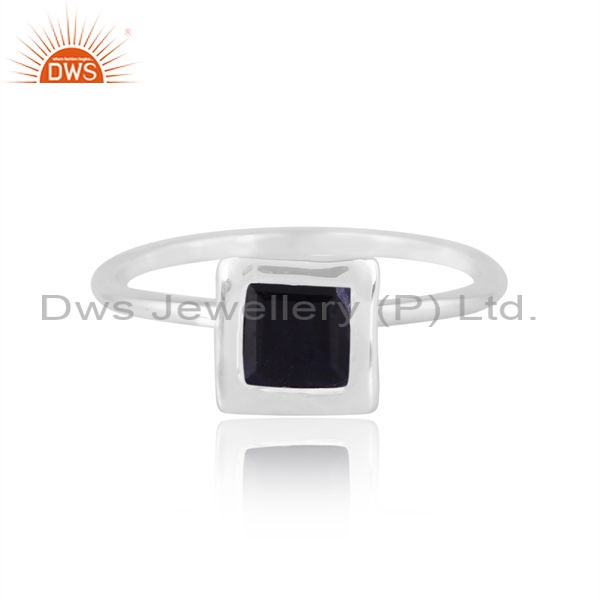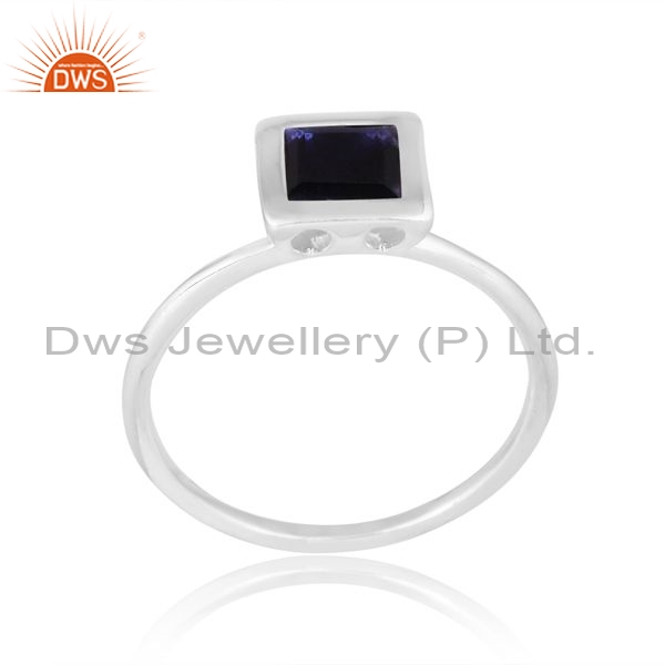 Sterling Silver White Ring With Iolite Square Cut Stone