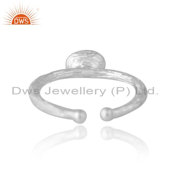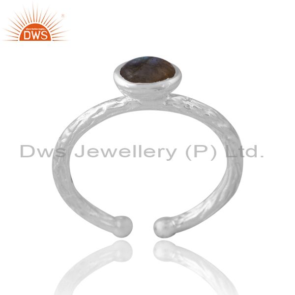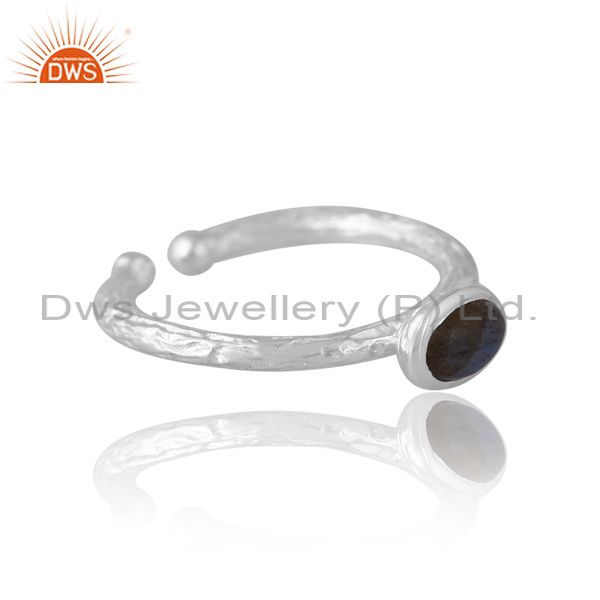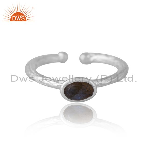 Sterling Silver White Ring With Labradorite Oval Horizontal