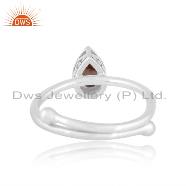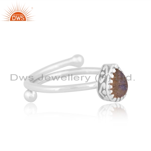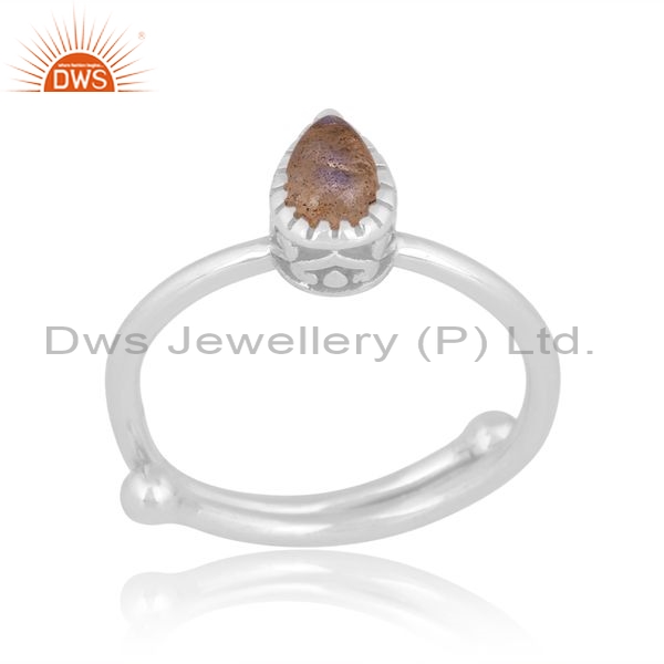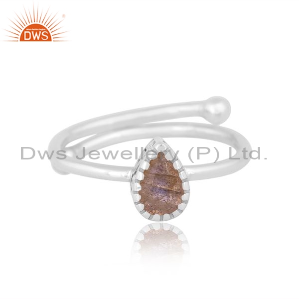 Sterling Silver White Ring With Labradorite Pear Cut Stone