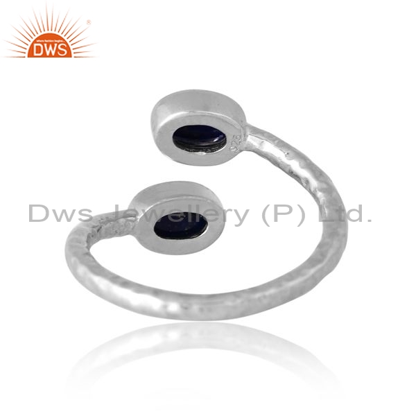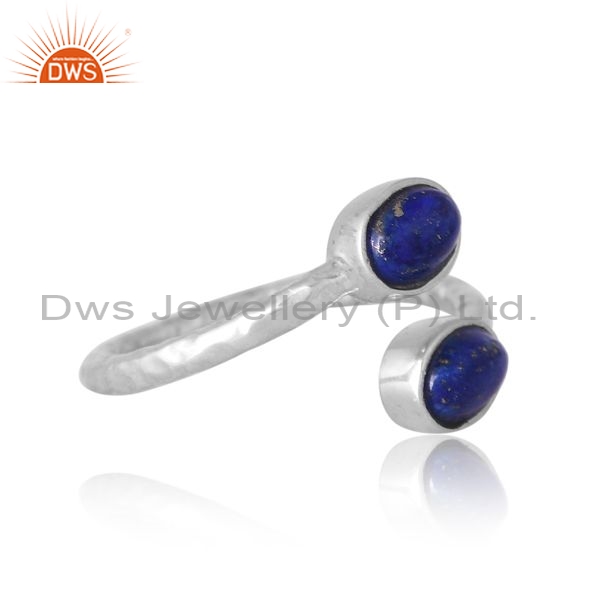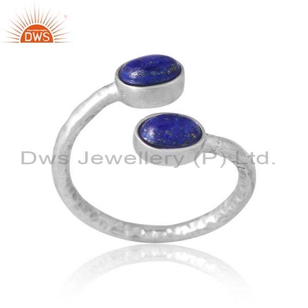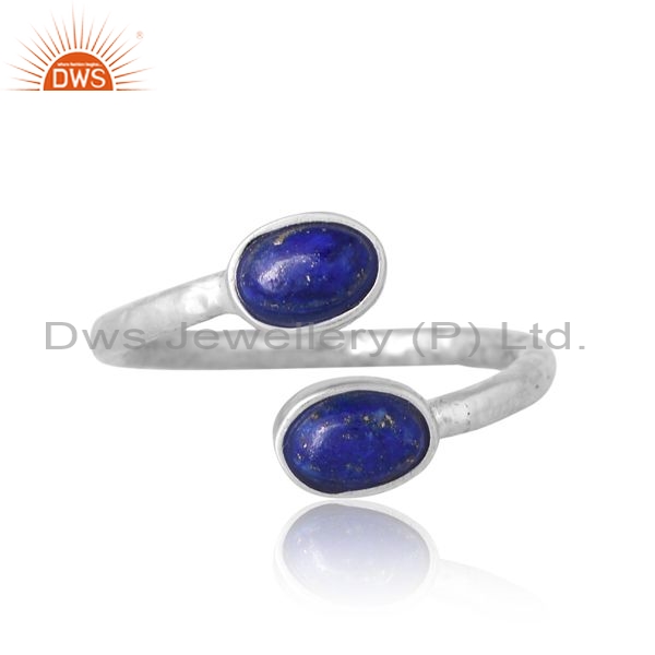 Sterling Silver White Ring With Lapis Oval Cut Adjustable