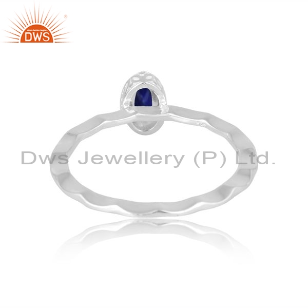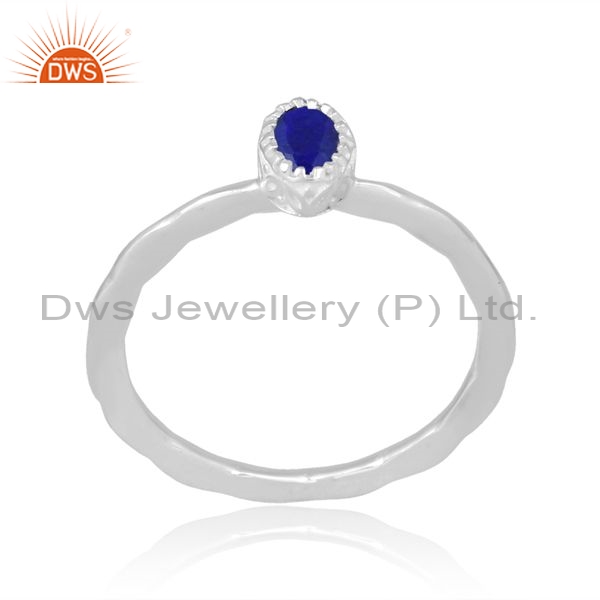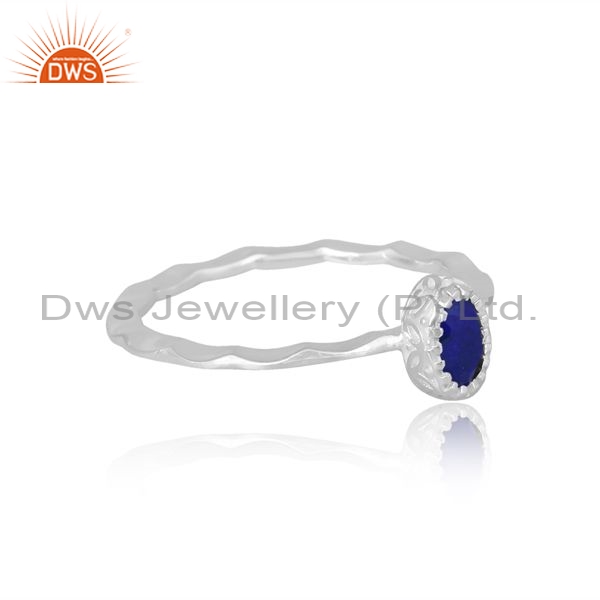 Sterling Silver White Ring With Lapis Oval Cut Stone