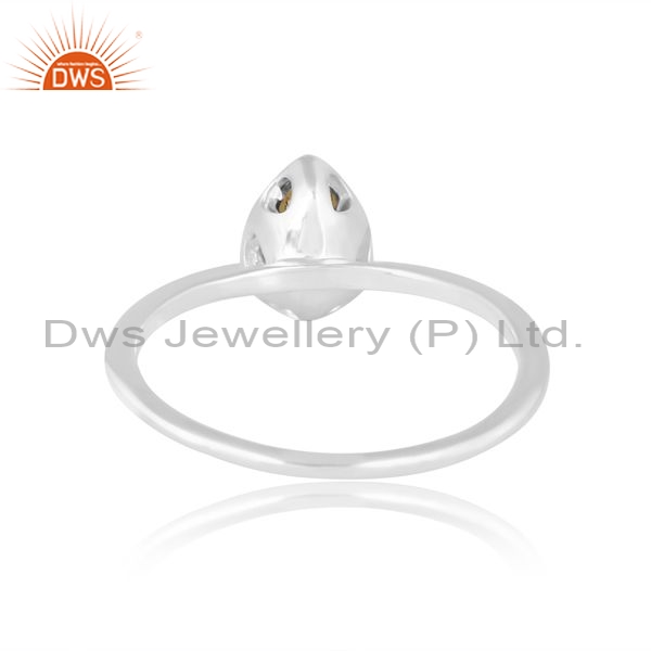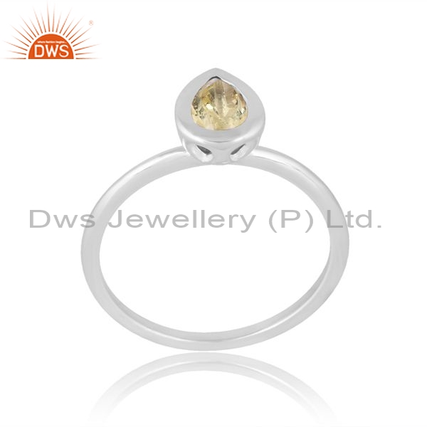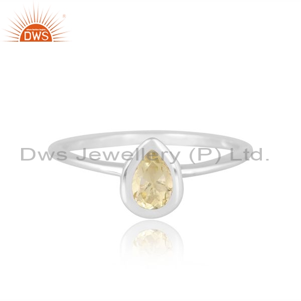 Sterling Silver White Ring With Lemon Topaz Pear Cut