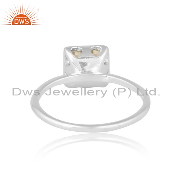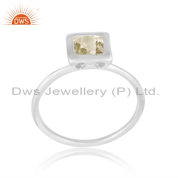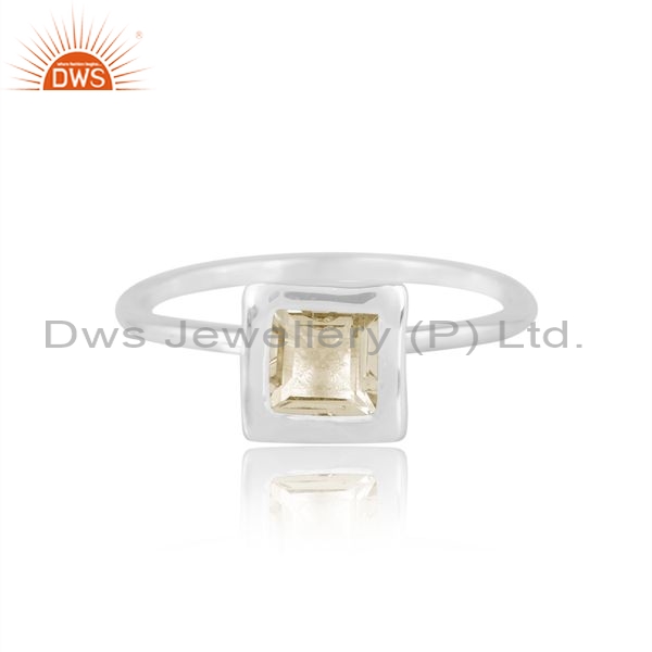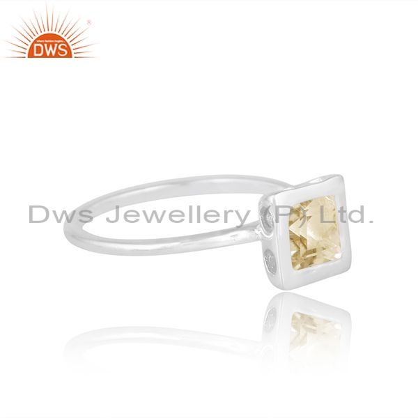 Sterling Silver White Ring With Lemon Topaz Square Cut