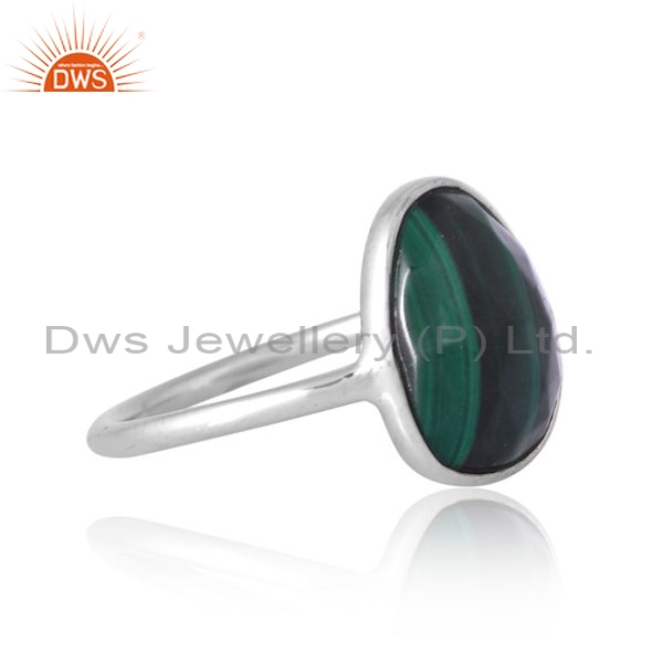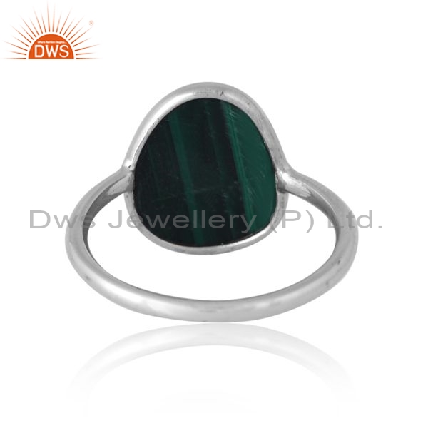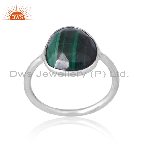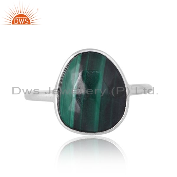 Sterling Silver White Ring With Malachite Unshaped Checker