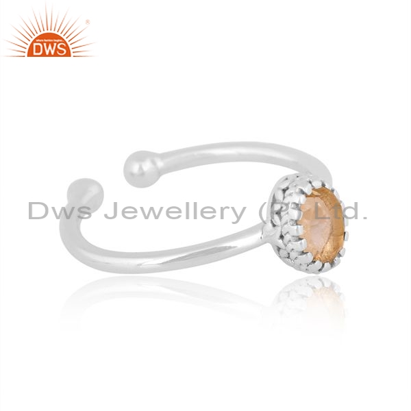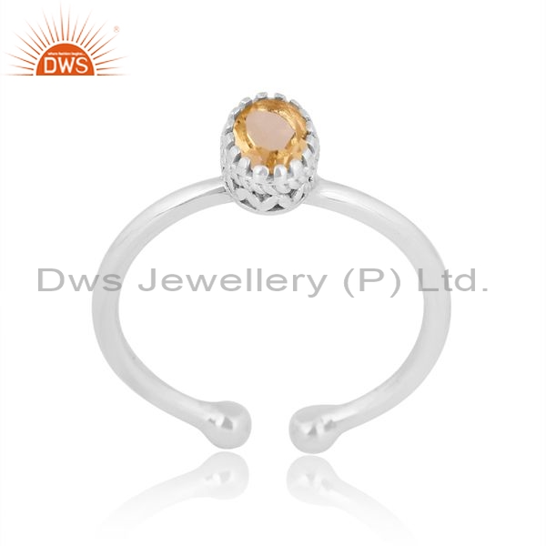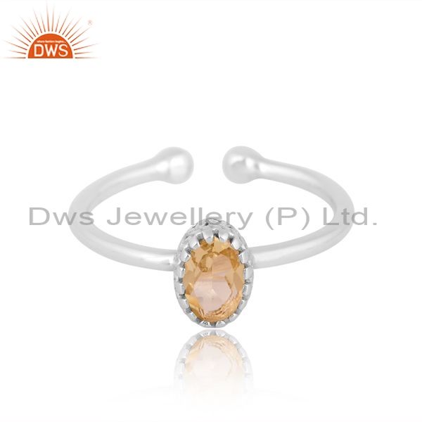 Sterling Silver White Ring With Oval Cut Lemon Topaz