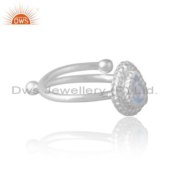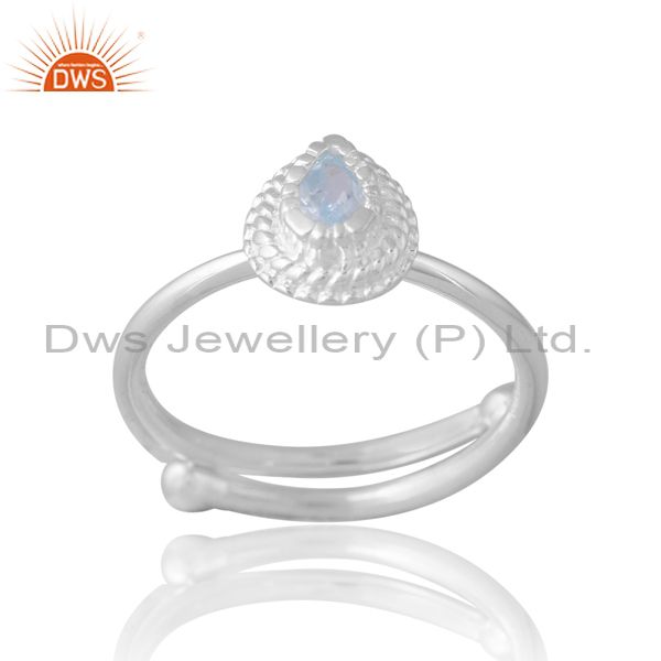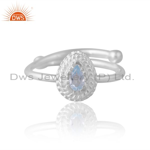 Sterling Silver White Ring With Pear Cut Blue Topaz