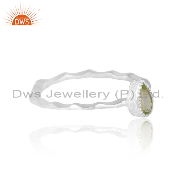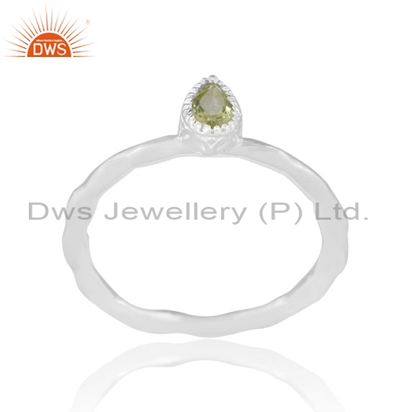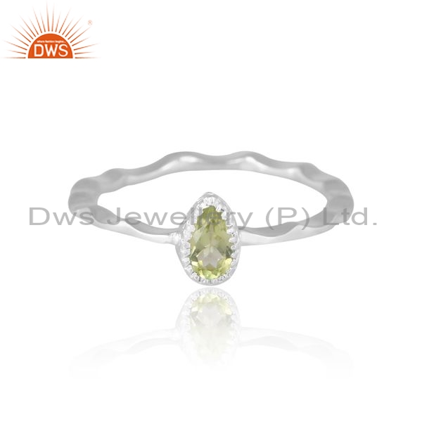 Sterling Silver White Ring With Peridot Pear Cut
