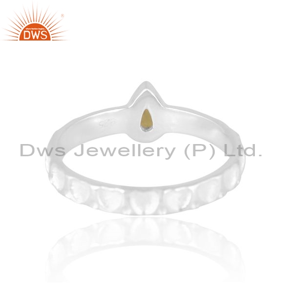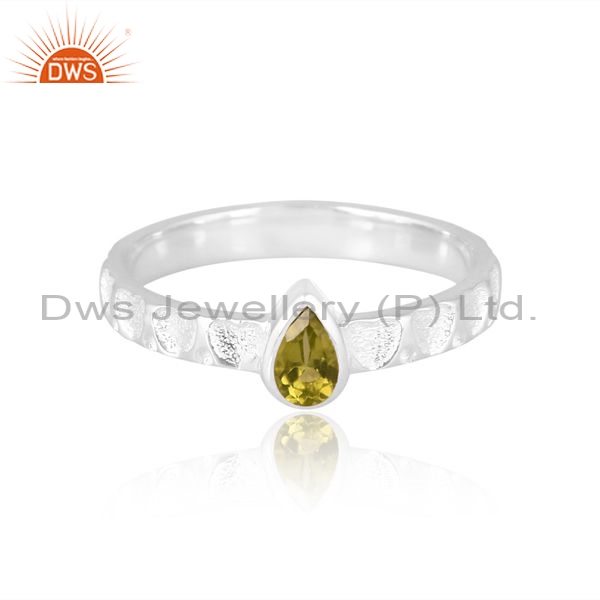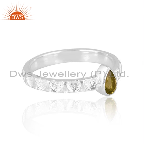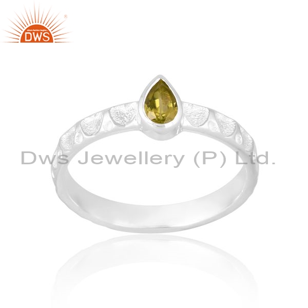 Sterling Silver White Ring With Peridot Pear Cut Stone
