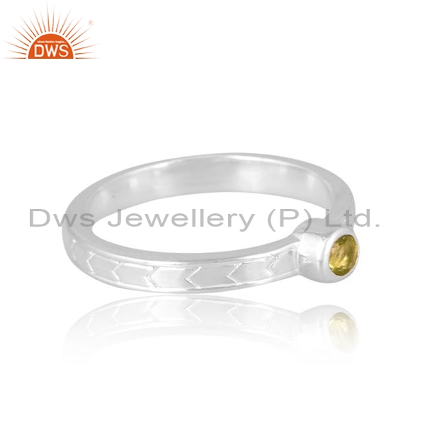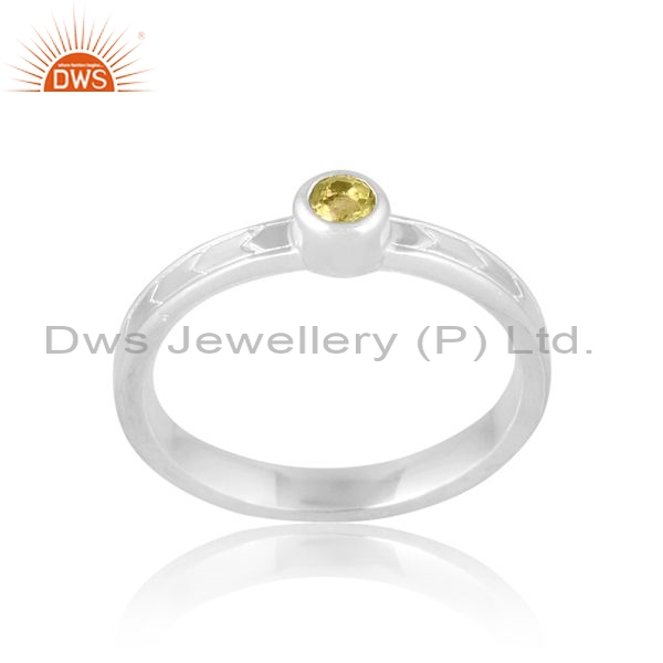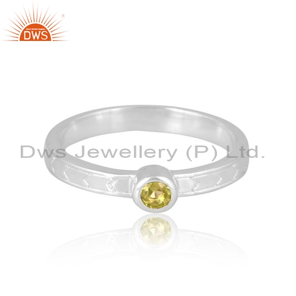Sterling Silver White Ring With Peridot Round Cut Gems