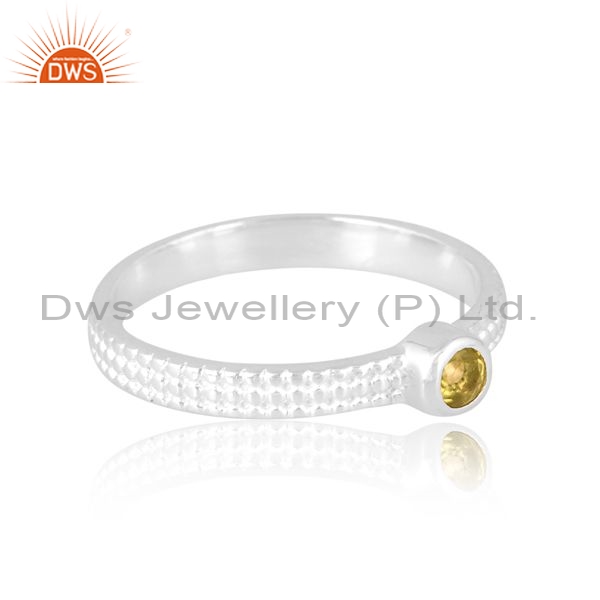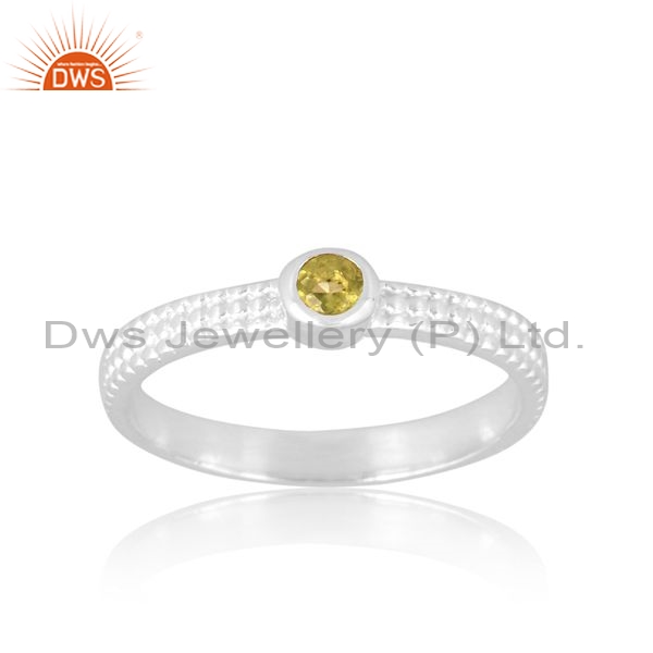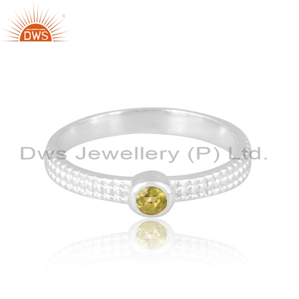 Sterling Silver White Ring With Peridot Round Cut Gemstone