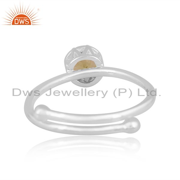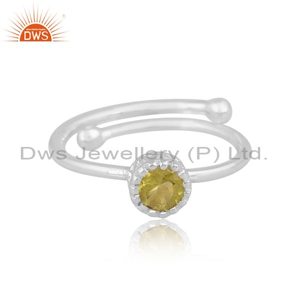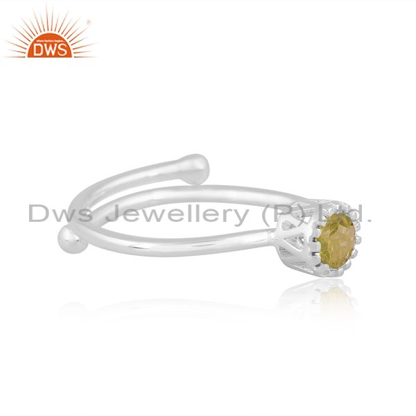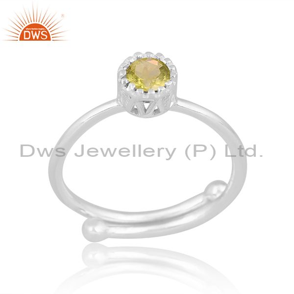 Sterling Silver White Ring With Peridot Round Cut Stone