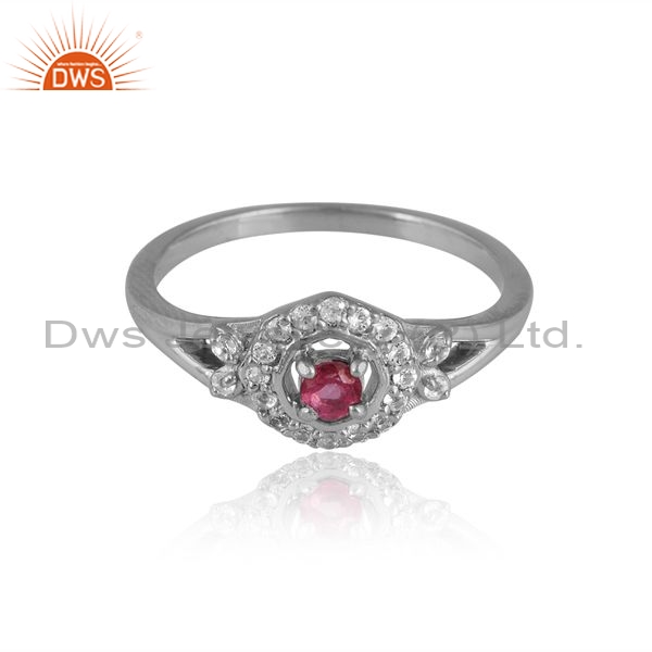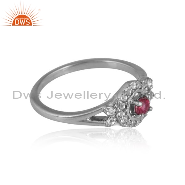 Sterling Silver White Ring With Pink And White Topaz Round