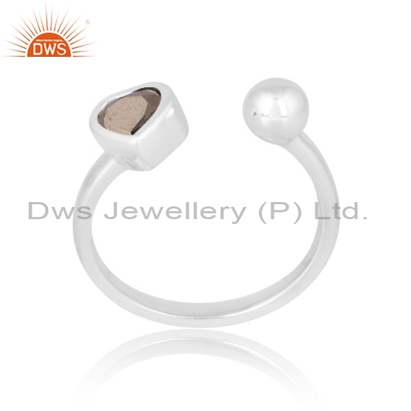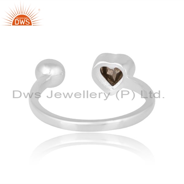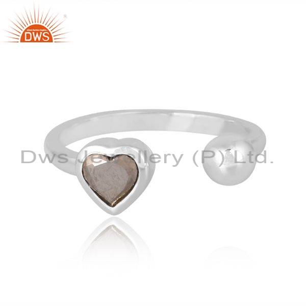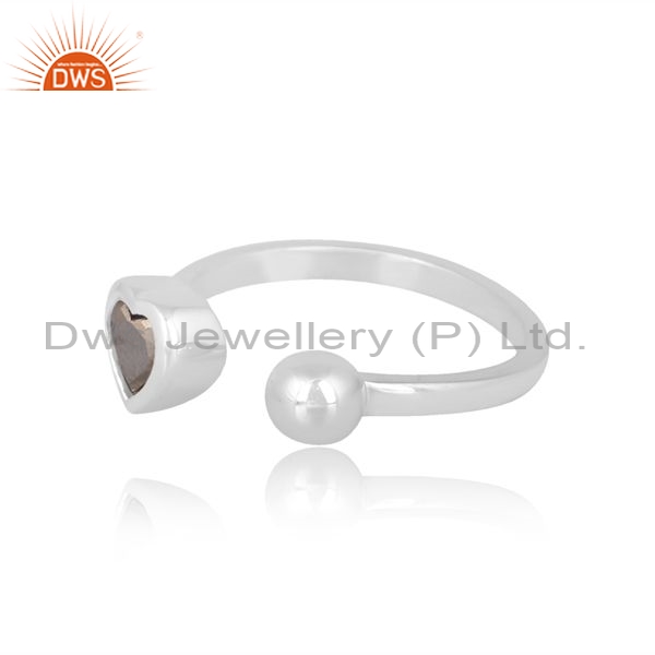 Sterling Silver White Ring With Pyrite Heart Cut Stone