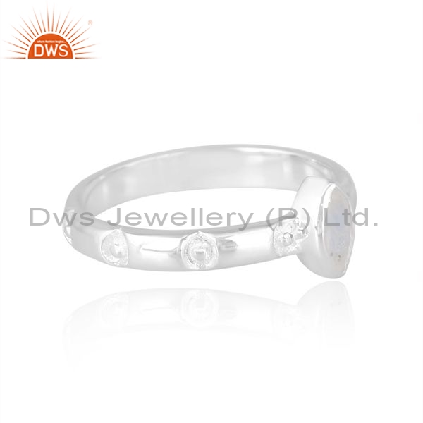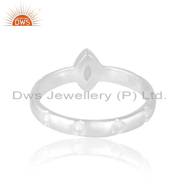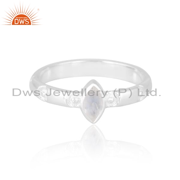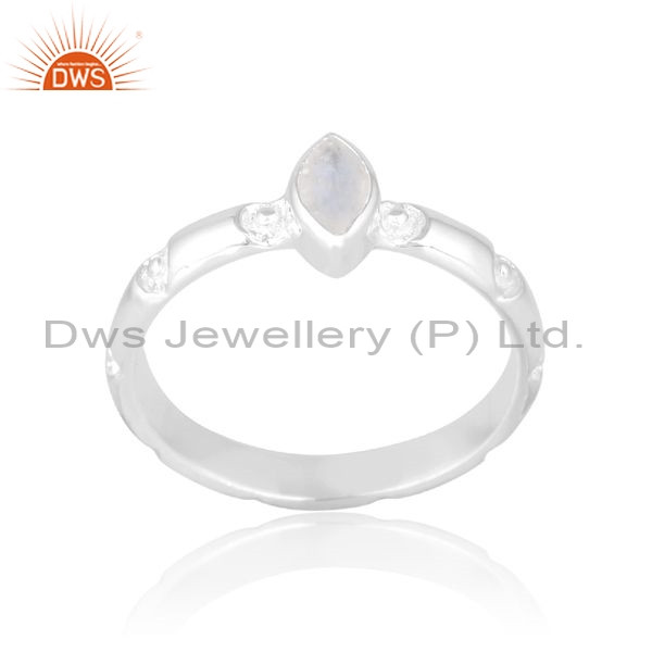 Sterling Silver White Ring With Rainbow Moonstone Cut