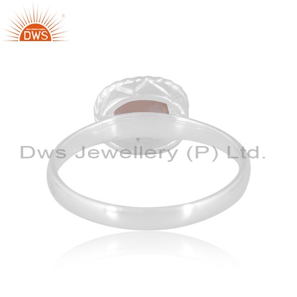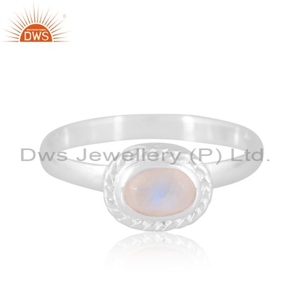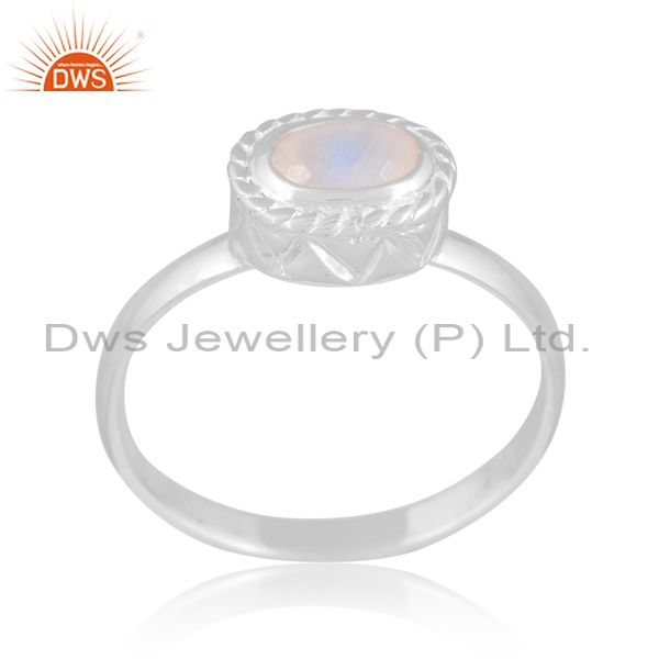 Sterling Silver White Ring With Rainbow Oval Cut Moon Stone