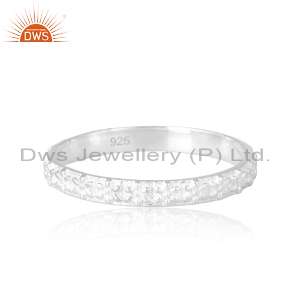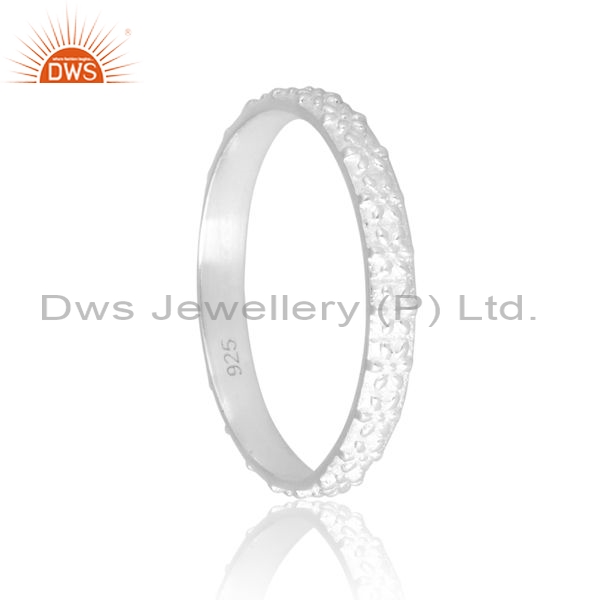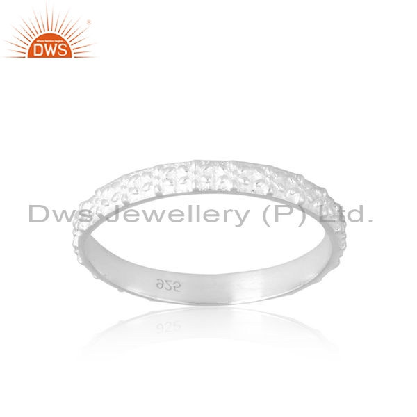 Sterling Silver White Ring With Ridge Pattern