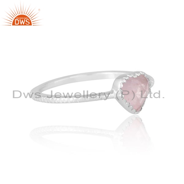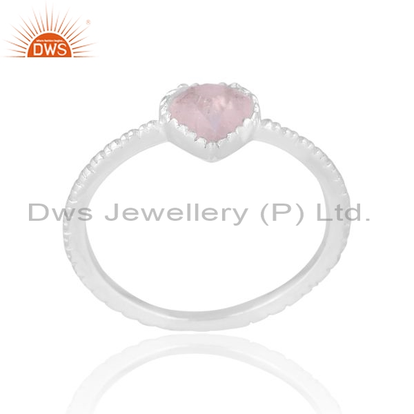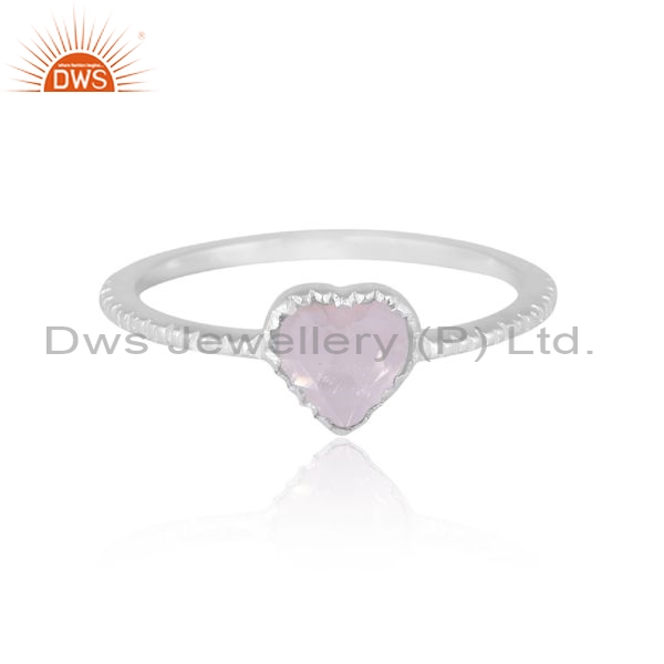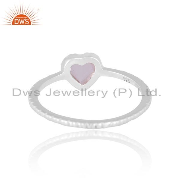Sterling Silver White Ring With Rose Quartz Heart Cut
