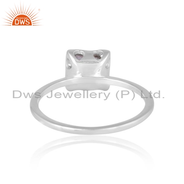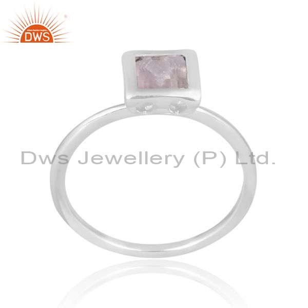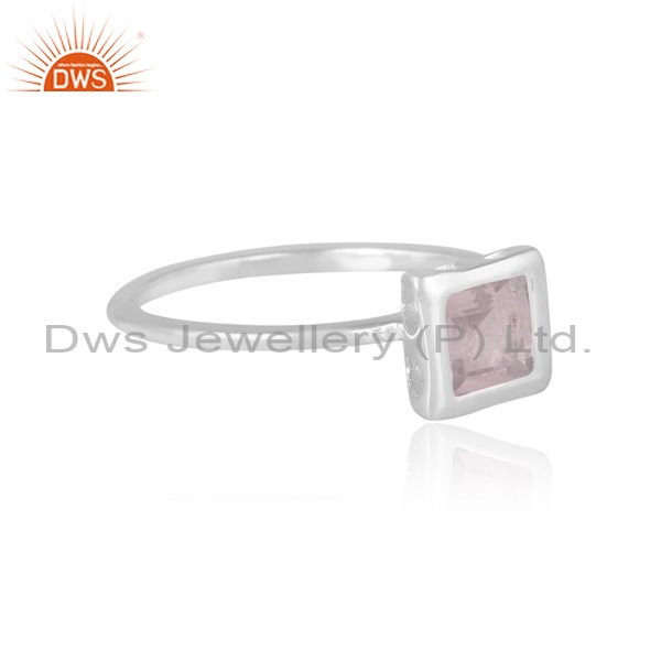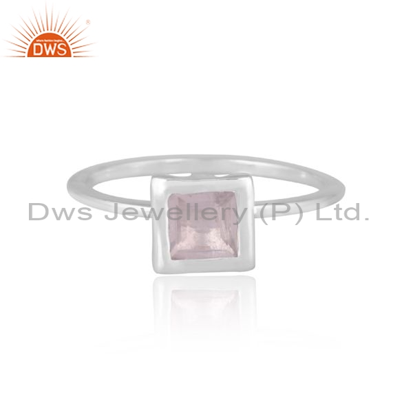 Sterling Silver White Ring With Rose Quartz Square Cut