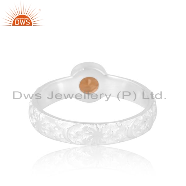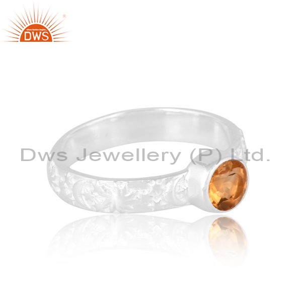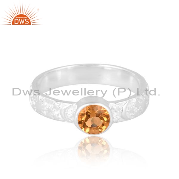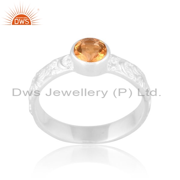 Sterling Silver White Ring With Round Cut Citrine Stone