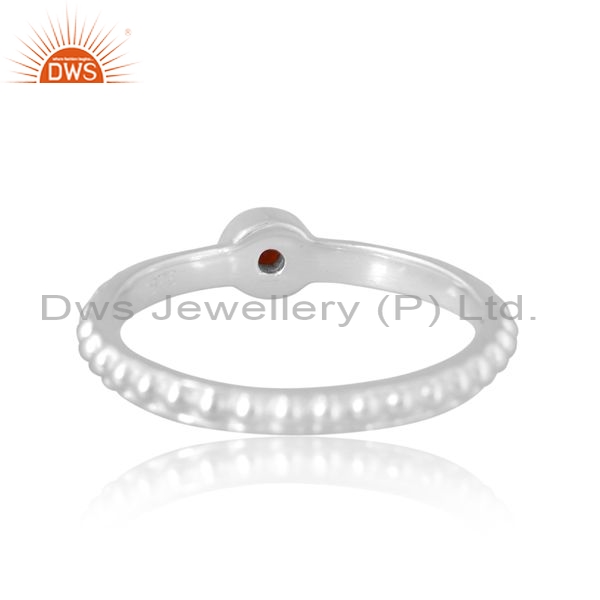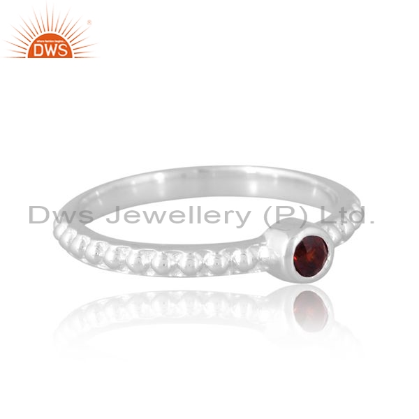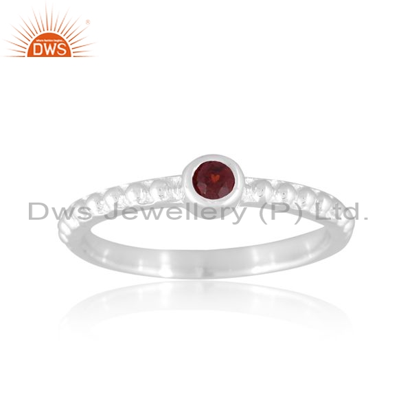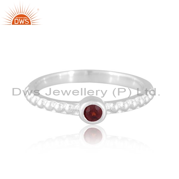Sterling Silver White Ring With Round Cut Garnet Gemstone