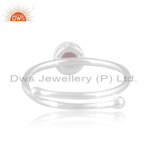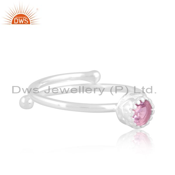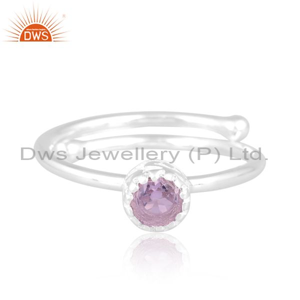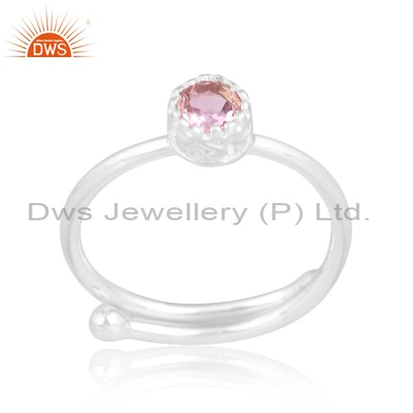 Sterling Silver White Ring With Round Pink Amethyst Stone