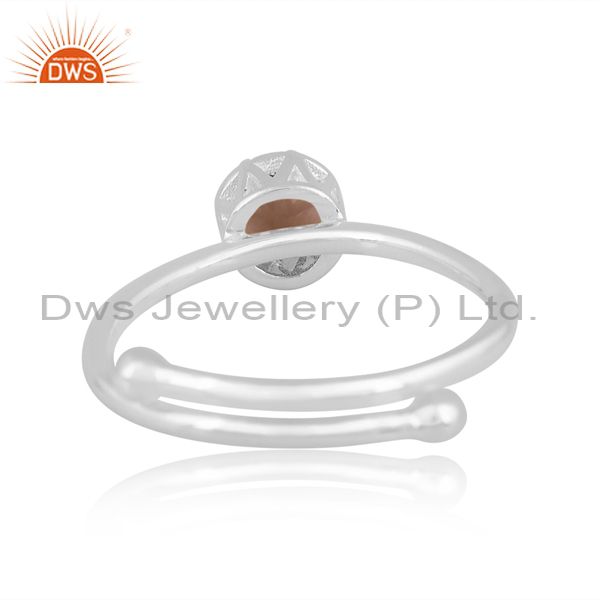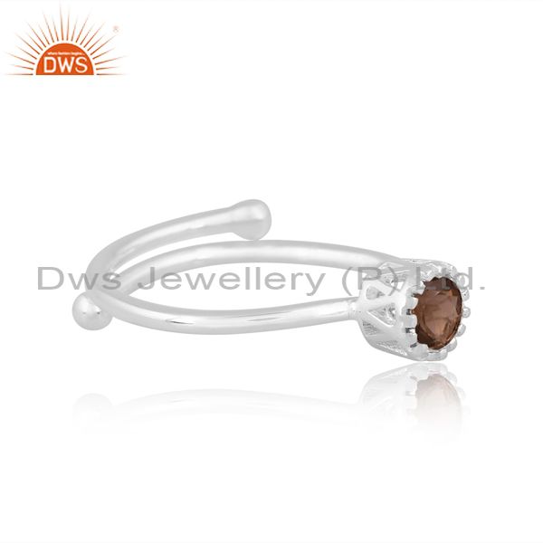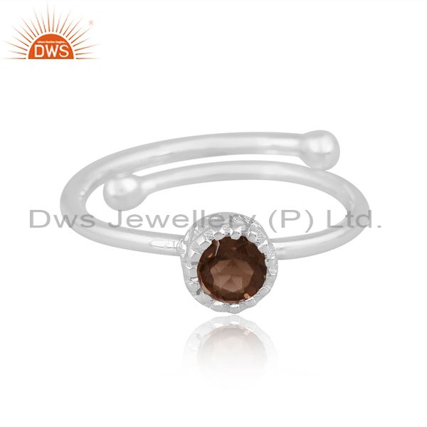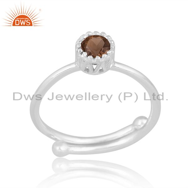 Sterling Silver White Ring With Round Smoky Cut Stone