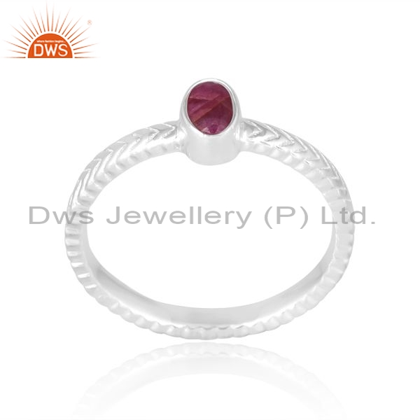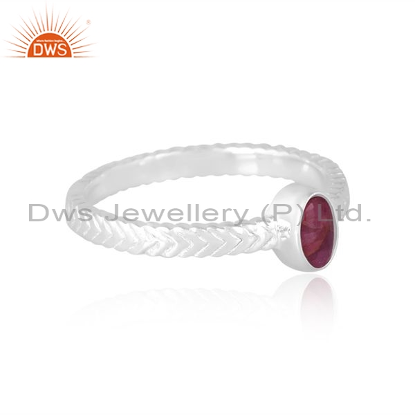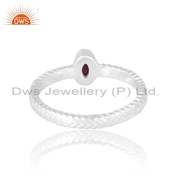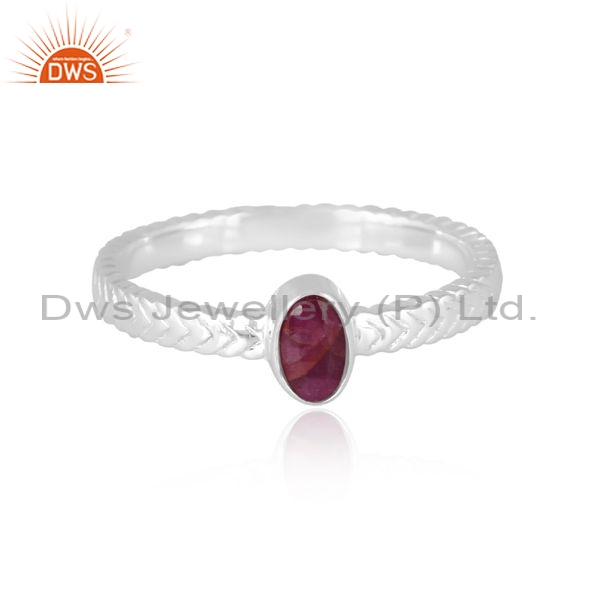 Sterling Silver White Ring With Ruby Oval Cut Stone