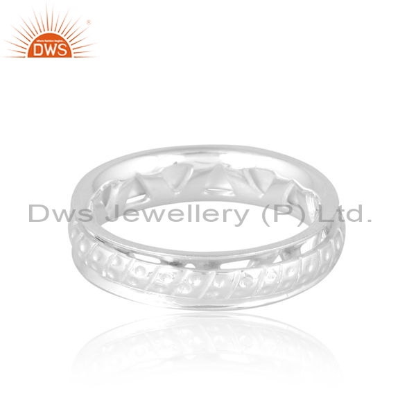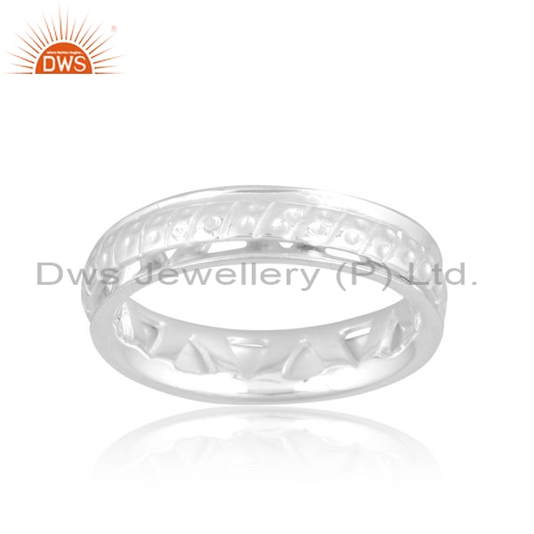 Sterling Silver White Ring With Semi Circle Curve Designs