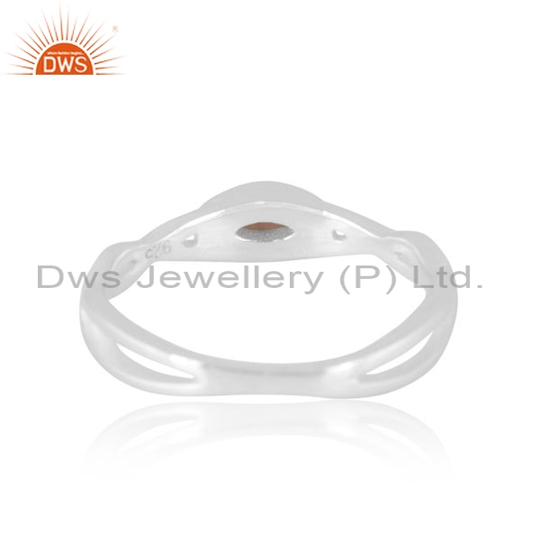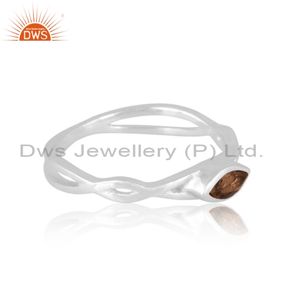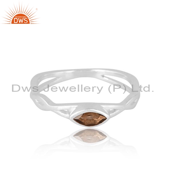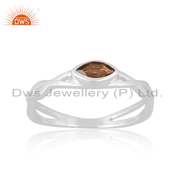 Sterling Silver White Ring With Smokey Cut Marquise Stone