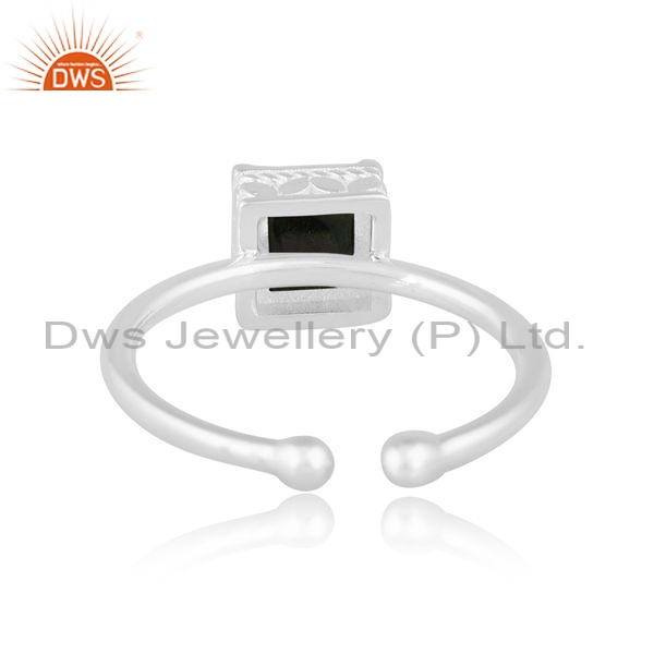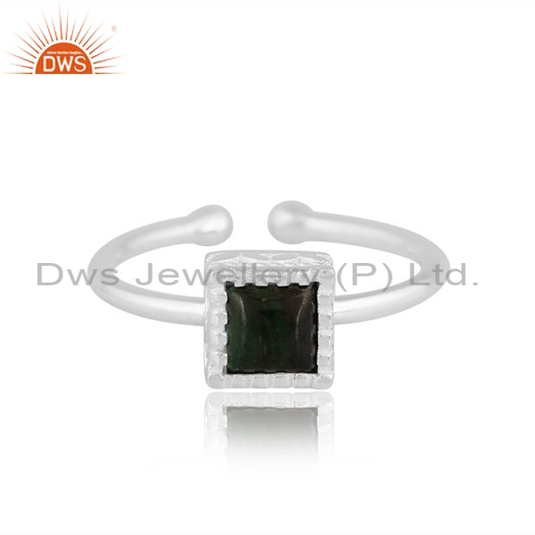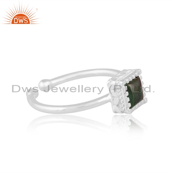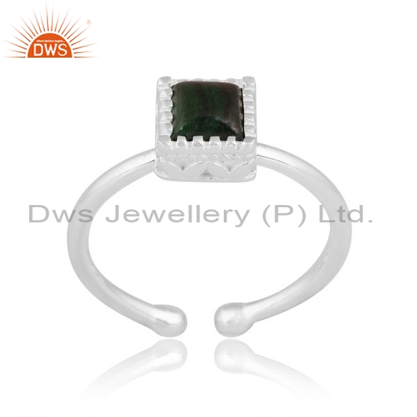 Sterling Silver White Ring With Square Cut Malachite