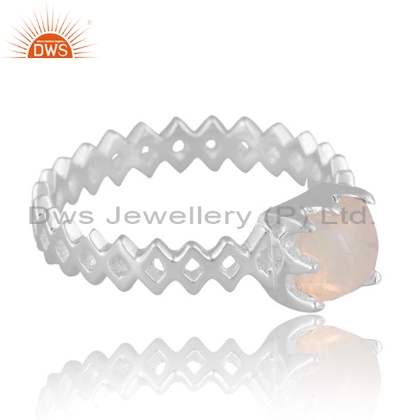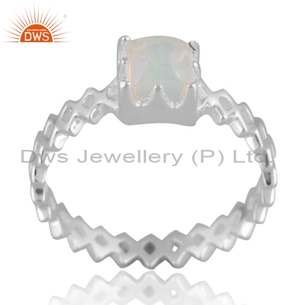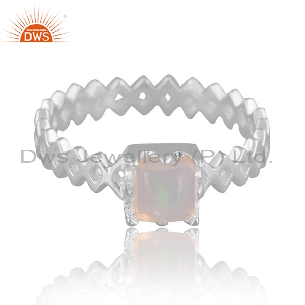 Sterling Silver White Ring With Squire Ethiopian Opal Stone