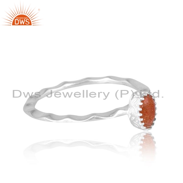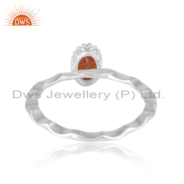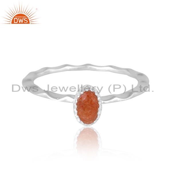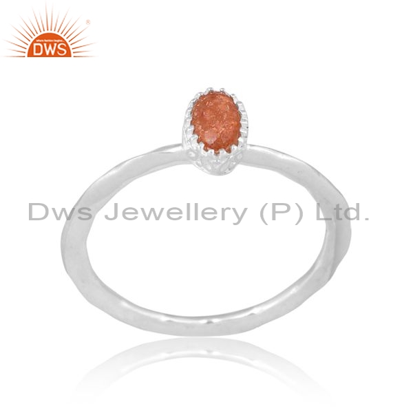 Sterling Silver White Ring With The Sun Stone Oval Cut