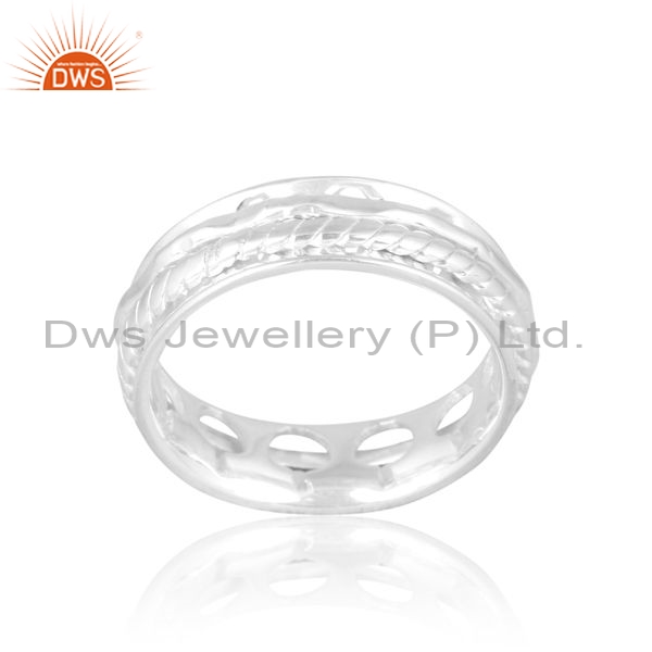 Sterling Silver White Ring With Uneven Layers And Patterns