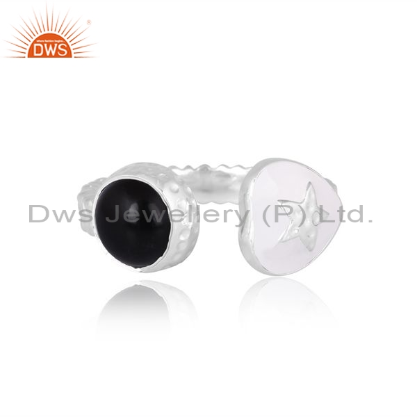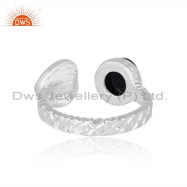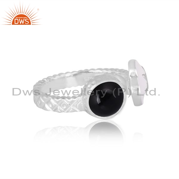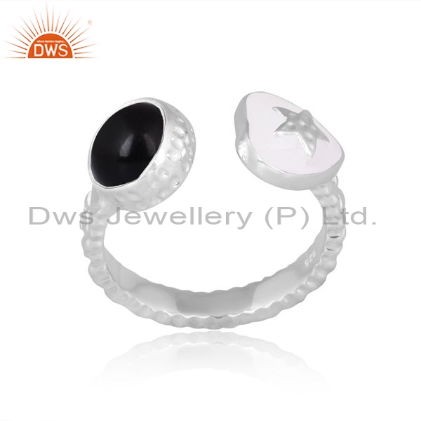 Sterling Silver White Ring With White Enamel And Black Onyx