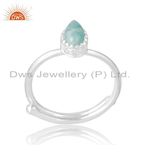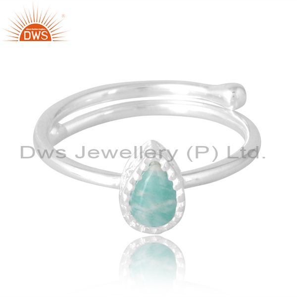 Sterling Silver Wire Band With Pear Pattern And Amazonite