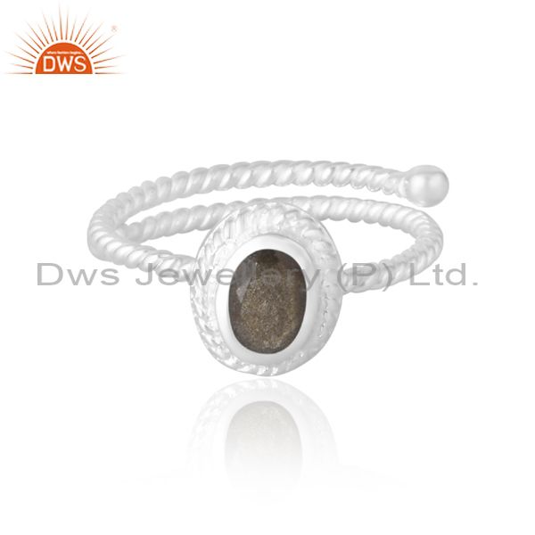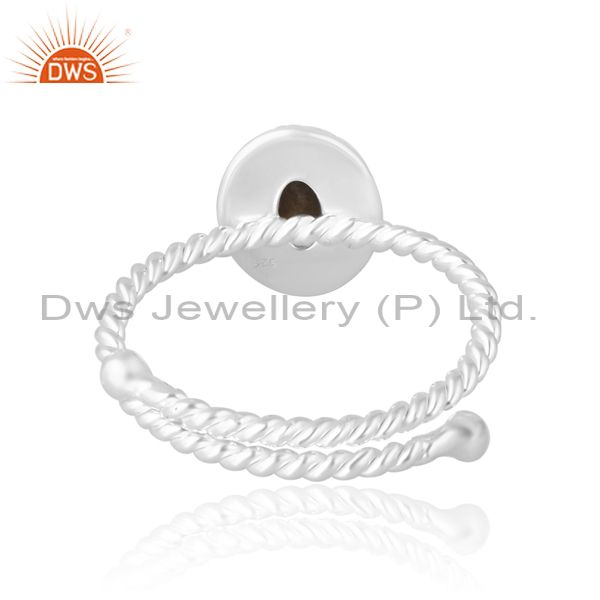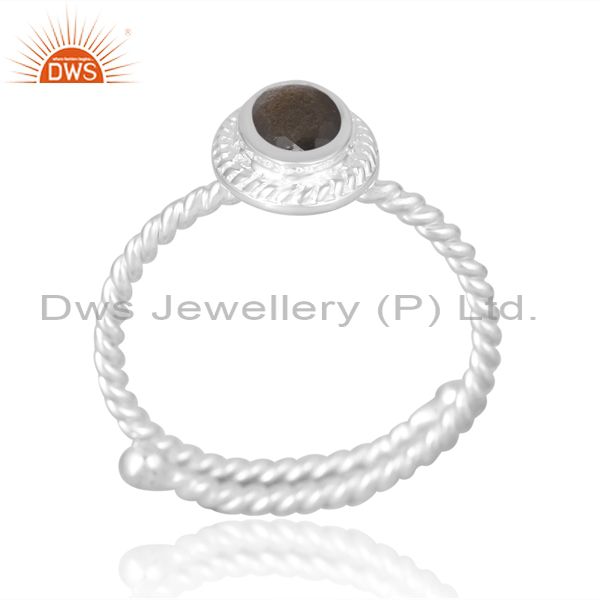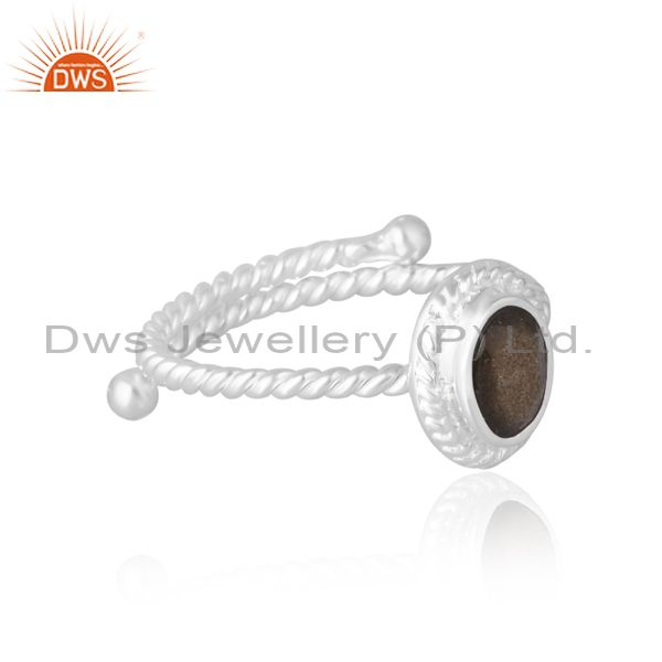 Sterling Silver Wire Band With Round Pattern And Obsidian