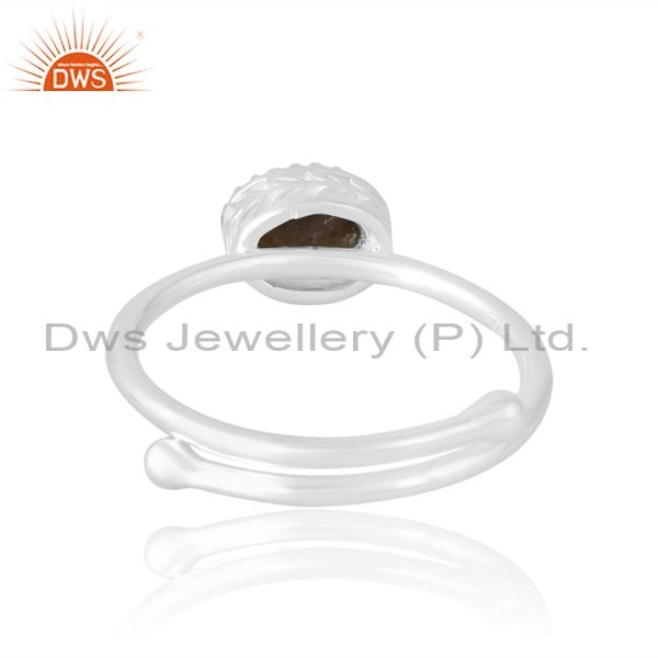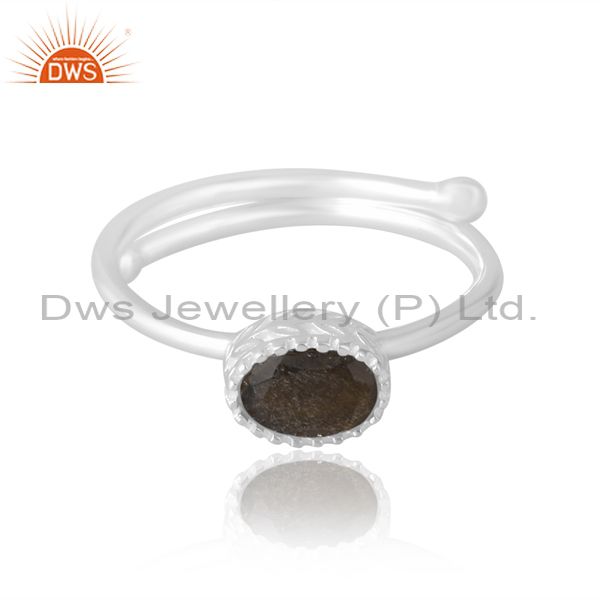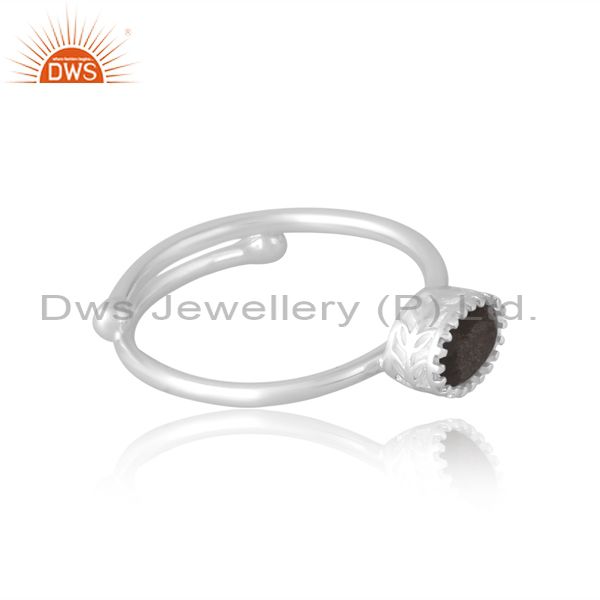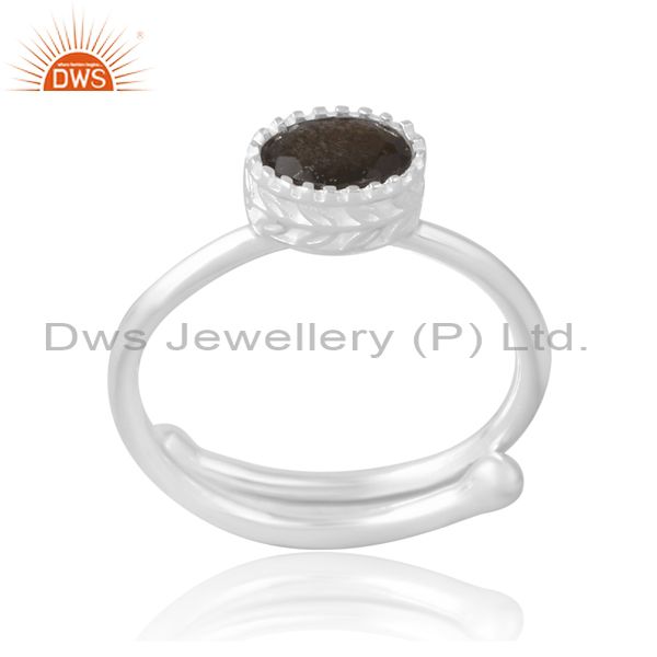 Sterling Silver Women's Wire Border Ring In Obsidian Oval