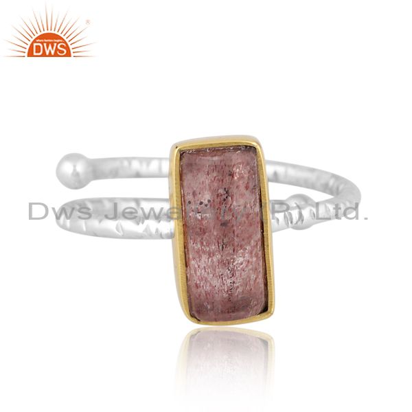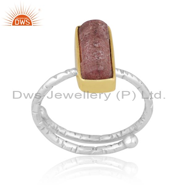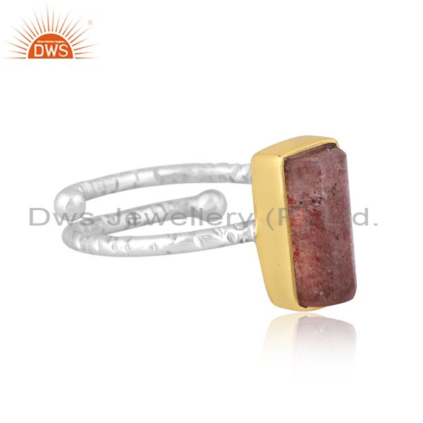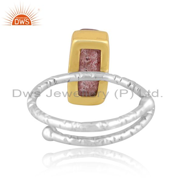 Strawberry Quartz Set Gold On Fine Silver Rectangular Ring