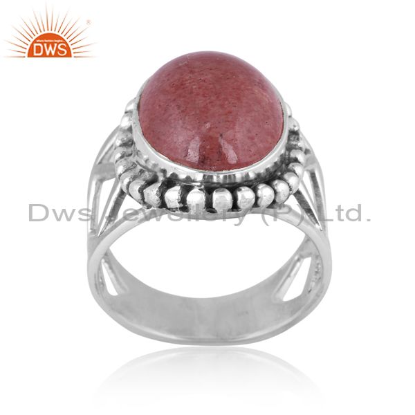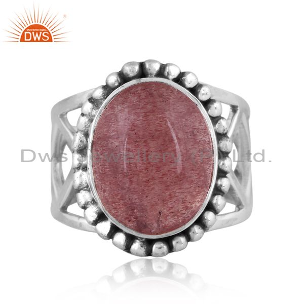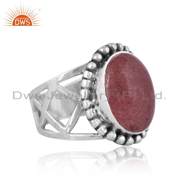 Strawberry Quartz Set Oxidized 925 Silver Statement Ring