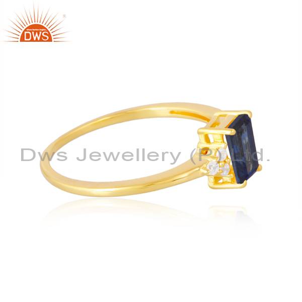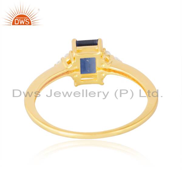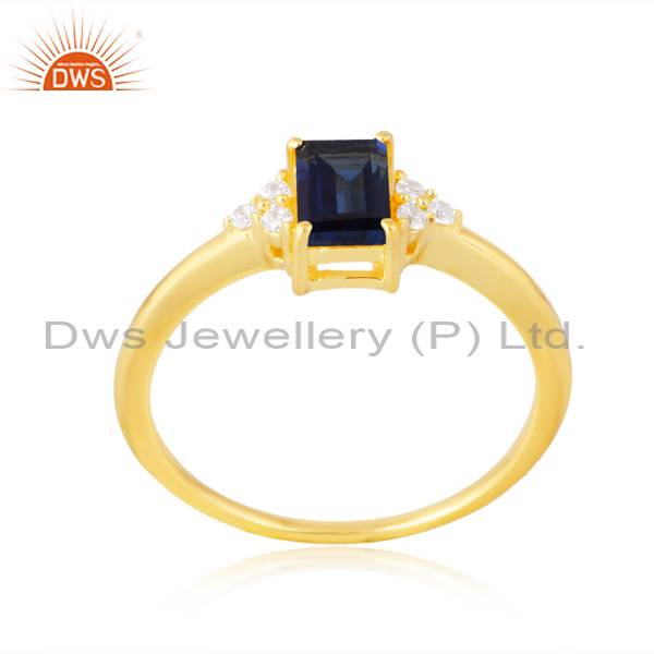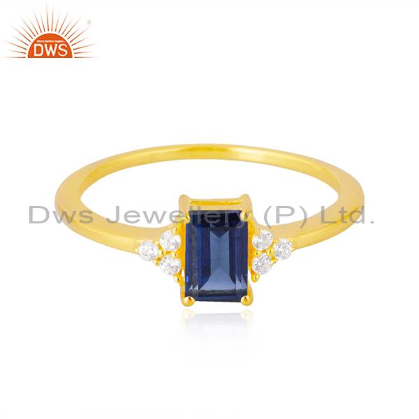 Stunning 18K Gold Plated Sterling Silver Cz & Sapphire Ring
