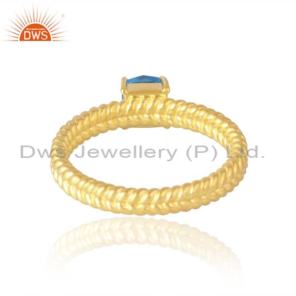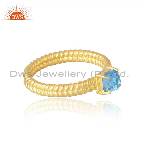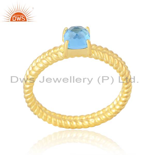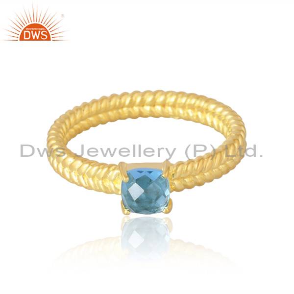 Stunning 18K Gold Sterling Silver Blue Topaz Cushion Ring