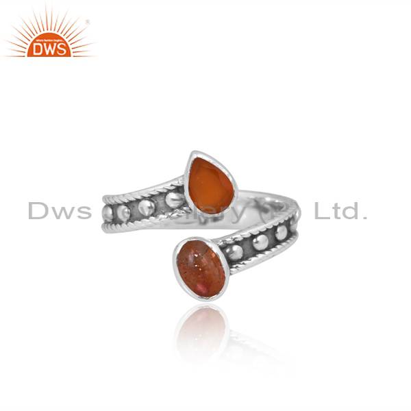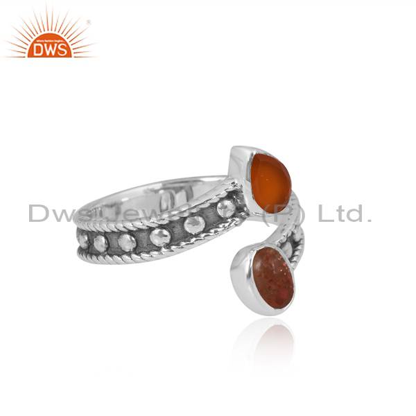 Stunning Carnelian & Sunstone Natural Ring For Elegant Style