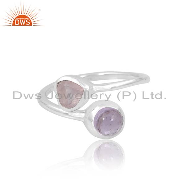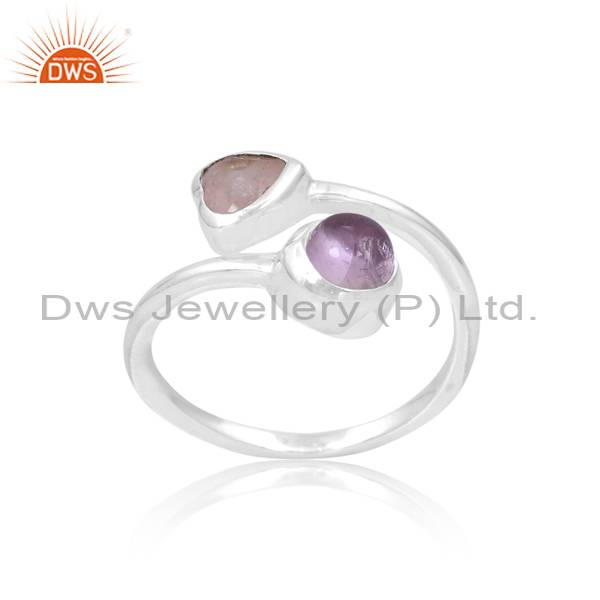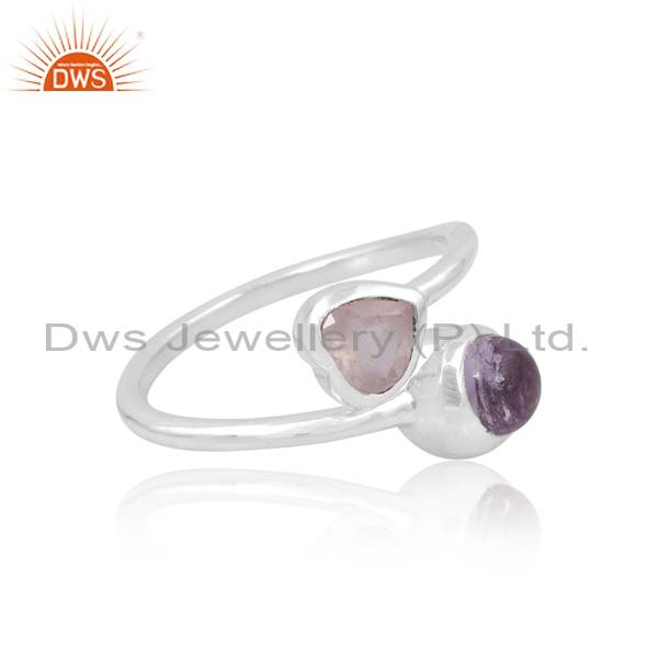 Stunning Dual Gems Ring: Pink Amethyst & Heart Rose Quartz