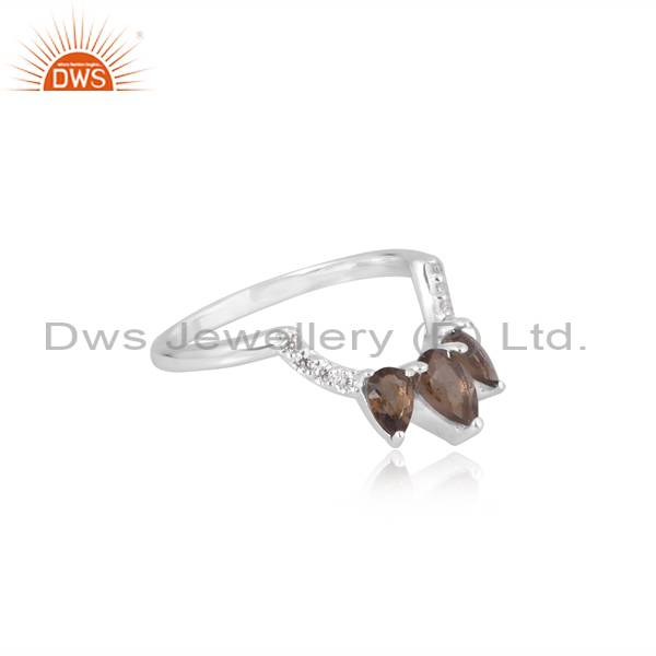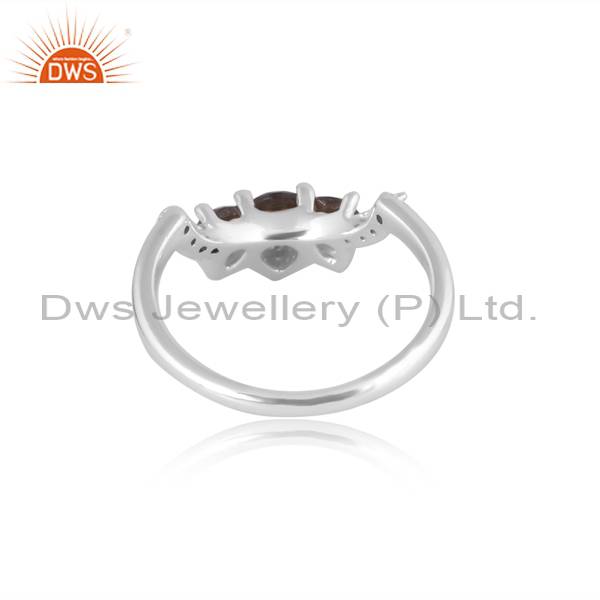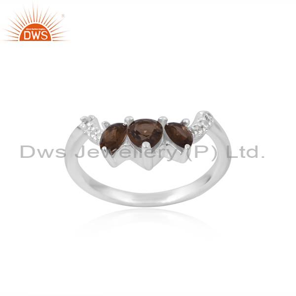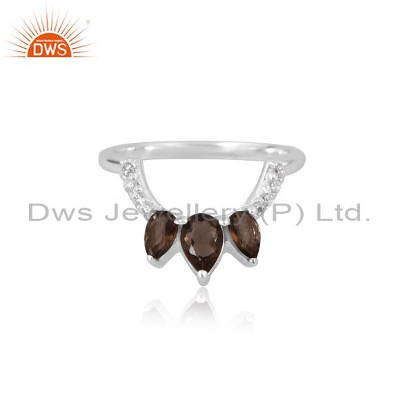 Stunning Duo: Smoky And Cz Gems Create Captivating Ring