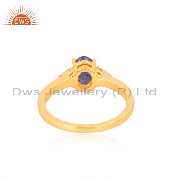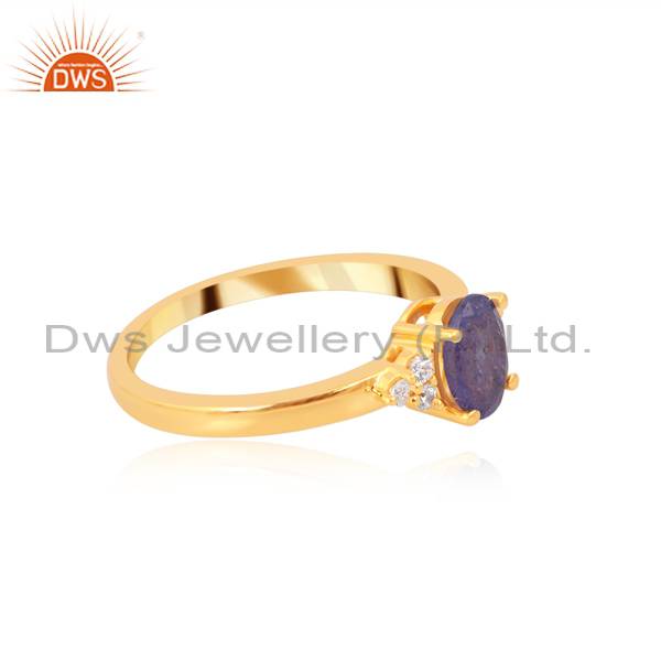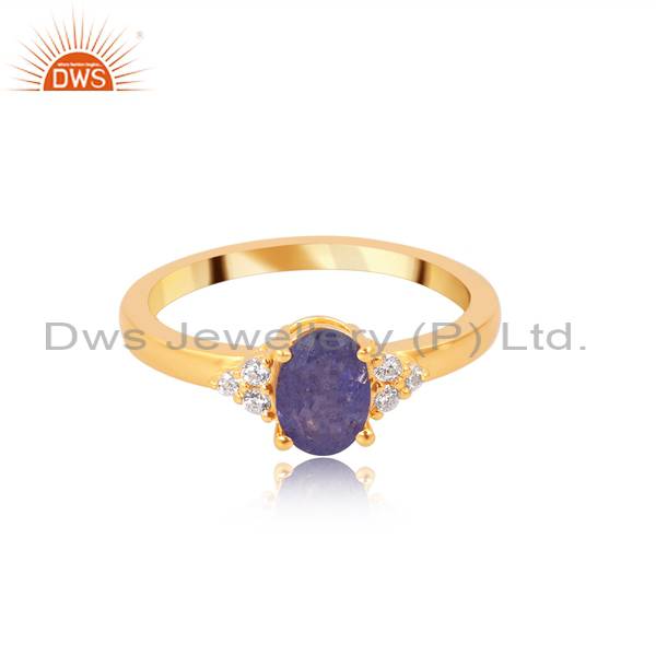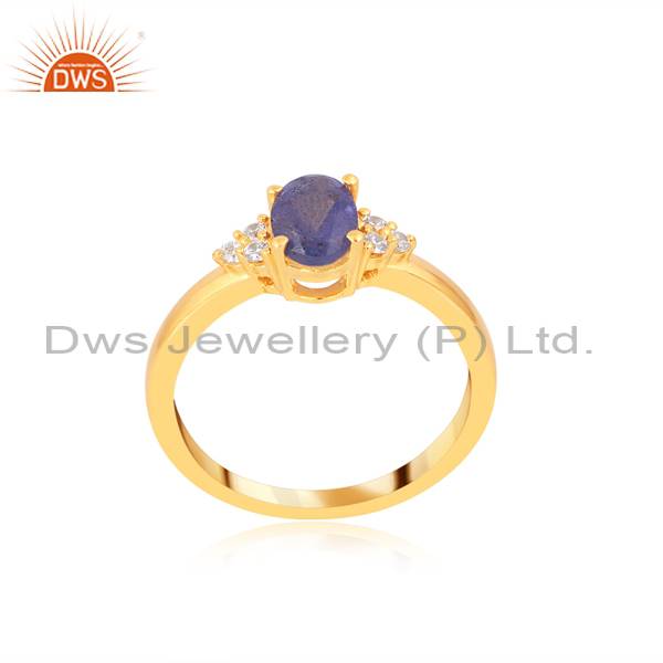 Stunning Gold Vermeil Ring With Tanzanite & Cubic Zirconia
