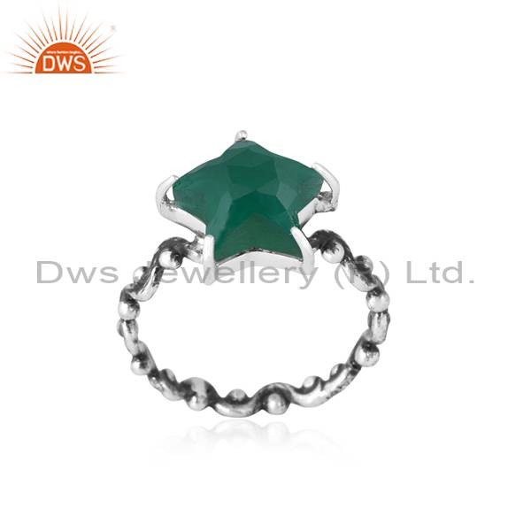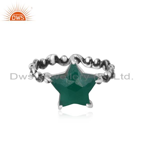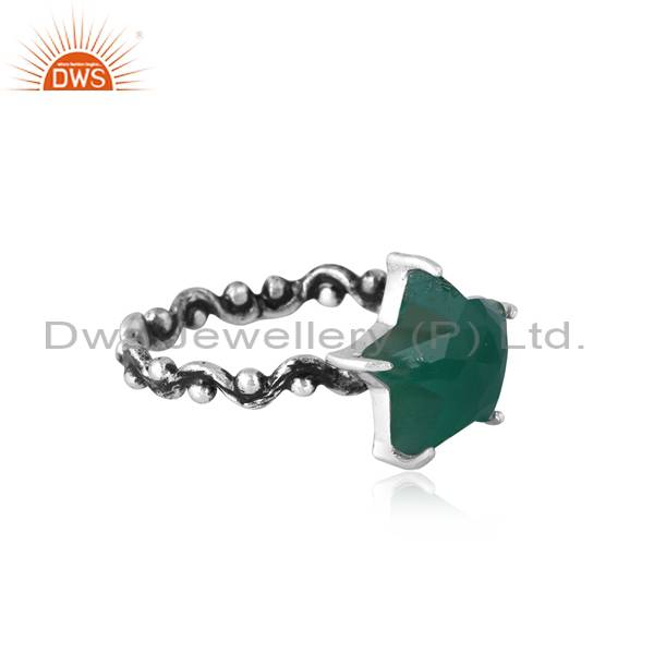 Stunning Green Onyx Ring In Oxidized Silver Exquisite Beauty